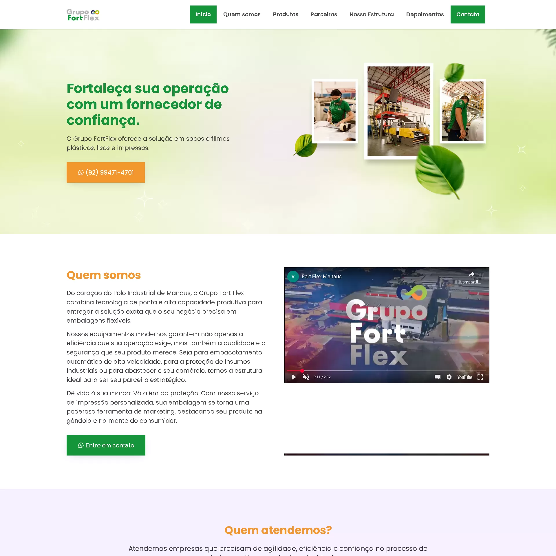 Com muito orgulho, apresentamos o novo site do Grupo FortFlex, referência em soluções sustentáveis e eficientes na produção de sacos e filmes plásticos, lisos e impressos. Esse projeto marca a união entre tecnologia, funcionalidade e identidade visual alinhada ao compromisso ecológico e à força da indústria amazonense.